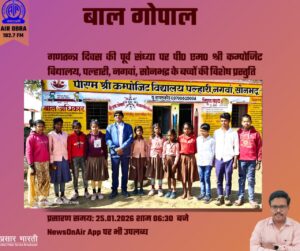 सोनभद्र। गणतंत्र दिवस की पूर्व संध्या पर पीएम श्री कंपोजिट विद्यालय, पल्हारी नगवां के छात्र-छात्राओं ने आकाशवाणी ओबरा से प्रसारित भव्य सांस्कृतिक कार्यक्रम के माध्यम से देशभक्ति, एकता और संस्कारों का सशक्त संदेश दिया। आदिवासी अंचल के इन होनहार बच्चों की प्रस्तुति ने श्रोताओं का मन मोह लिया और चारों ओर सराहना बटोरी।