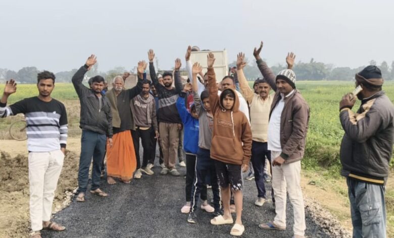 मानक के विपरीत सड़क निर्माण को लेकर ग्रामीणों का आक्रोश, किया जोरदार विरोध