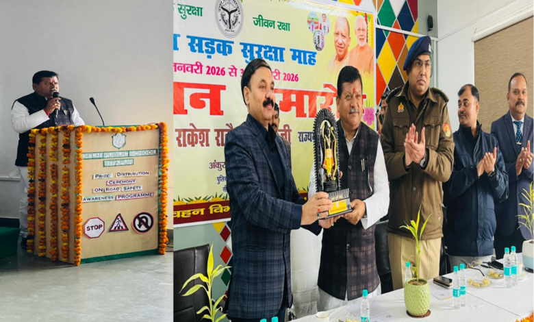 सीतापुर। राष्ट्रीय सड़क सुरक्षा माह 2026 के अंतर्गत आयोजित जागरूकता कार्यक्रमों की श्रृंखला का समापन समारोह दिल्ली पब्लिक स्कूल, सीतापुर के प्रांगण में सफलतापूर्वक संपन्न हुआ। कार्यक्रम का शुभारंभ मुख्य अतिथि माननीय राज्य मंत्री श्री राकेश राठौर गुरु द्वारा दीप प्रज्ज्वलित कर किया गया। आयोजन का मुख्य उद्देश्य सड़क सुरक्षा नियमों के प्रति जन-जागरूकता बढ़ाना और सुरक्षित यातायात को प्रोत्साहित करना रहा।