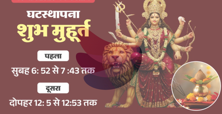 - इस साल चैत्र नवरात्रि पर कलश स्थापना के लिए सबसे शुभ समय सुबह 06 बजकर 52 मिनट से सुबह 07 बजकर 43 मिनट तक रहेगा।