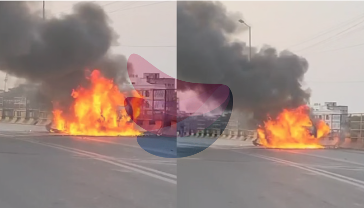 राजधानी रायपुर में आज शुक्रवार को एक बड़ा हादसा टल गया, जब आमानाका ओवरब्रिज पर दौड़ रही एक कार में अचानक आग भड़क उठी। घटना उस वक्त हुई जब वाहन सामान्य रूप से चल रहा था, लेकिन अचानक इंजन हिस्से से धुआं निकलने लगा और कुछ ही पलों में आग ने विकराल रूप ले लिया।