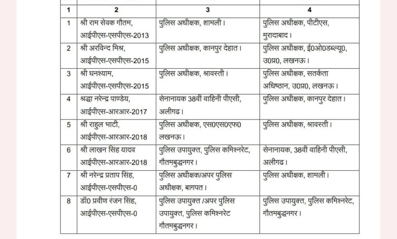 कानपुर देहात और श्रावस्ती के एसपी सहित कई जनपदों में फेरबदल