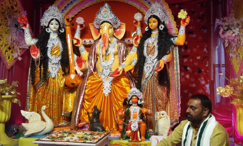 श्री गणेश, माता लक्ष्मी व मां सरस्वती की भव्य प्रतिमाओं के साथ पूजन शुरू