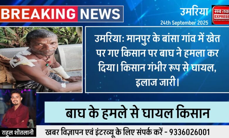 उमरिया। बांधवगढ़ टाइगर रिजर्व के बफर जोन से लगे गांवों में इंसान और जंगली जानवरों के बीच द्वंद्व लगातार बढ़ता जा रहा है। मंगलवार की सुबह मानपुर तहसील के ग्राम पंचायत कछोहा के ग्राम बांसा में बाघ ने एक किसान पर हमला कर दिया। घटना के बाद ग्रामीणों में भय का माहौल व्याप्त है।