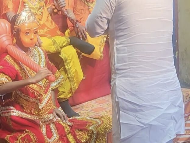 करारी गांव में 45 वर्षों से चल रही रामलीला में संदीप मिश्रा ने की प्रभु श्रीराम की आरती