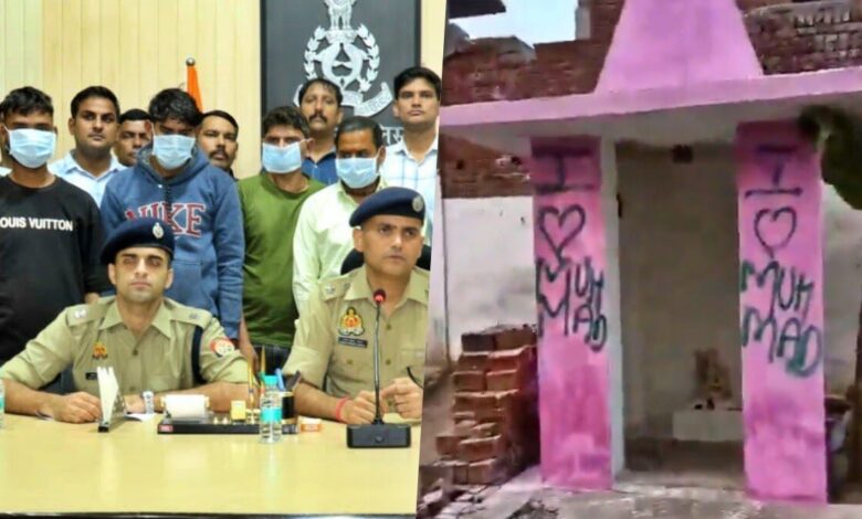 अलीगढ़ में मंदिरों की दीवारों पर “आई लव मोहम्मद” लिखने का मामला हुआ उजागर — पुलिस ने चार आरोपियों को किया गिरफ्तार