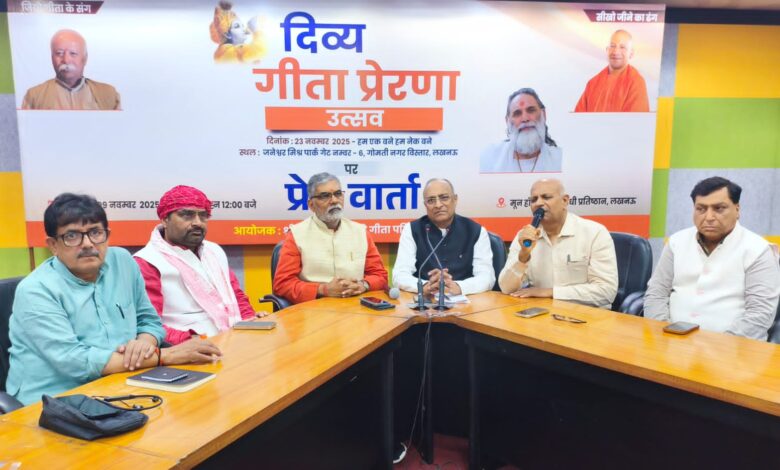 23 नवम्बर को जनेश्वर मिश्र पार्क (गेट नं. 6, गोमती नगर विस्तार) में आयोजित होने वाले इस उत्सव में प्रमुख संतों का आशीर्वाद, विशिष्ट गीता पाठ, प्रेरणादायक प्रवचन और सांस्कृतिक प्रस्तुतियां होंगी। आयोजकों ने कहा कि समाज में नैतिकता, सद्भाव और सकारात्मक सोच का प्रसार ही गीता का वास्तविक संदेश है।