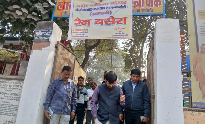 चंदौली। नगर पालिका परिषद पीडीडीयू नगर के रैन बसेरा का जिलाधिकारी चन्द्र मोहन गर्ग ने आकस्मिक निरीक्षण किया। निरीक्षण के दौरान उन्होंने रैन बसेरे में उपलब्ध सुविधाओं का जायजा लेते हुए साफ-सफाई, ठंड से बचाव की व्यवस्था एवं अन्य आवश्यक सुविधाओं को और बेहतर बनाए रखने के निर्देश दिए।