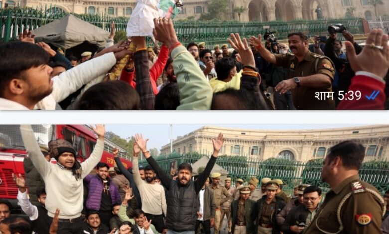 लखनऊ विश्वविद्यालय के छात्रों ने विधानसभा के सामने जताया आक्रोश, केंद्र सरकार से हस्तक्षेप की मांग