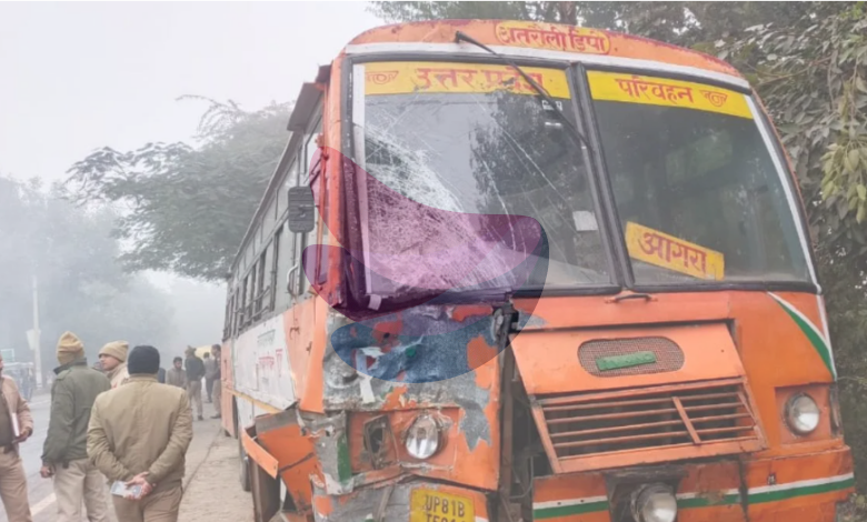 कोहरे में रोडवेज और स्कूल बस की भीषण भिंड़त, आगरा-अलीगढ़ हाईवे पर हादसा; तीन लोग घायल