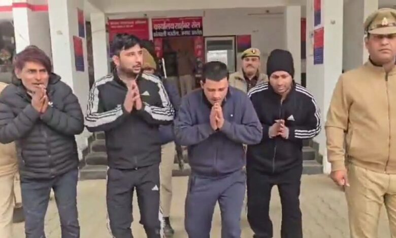 अमरोहा। जनपद अमरोहा में गुंडागर्दी का एक मामला सामने आया है। दिल्ली से सीतापुर जा रही एक यात्री बस में तोड़फोड़ करने के आरोप में गजरौला थाना पुलिस ने चार आरोपियों को गिरफ्तार किया है। पुलिस कार्रवाई के बाद आरोपियों को हाथ जोड़कर लंगड़ाते हुए थाने लाया गया, जिसका वीडियो सोशल मीडिया पर चर्चा का विषय बना हुआ है।