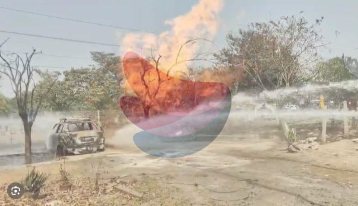 जेसीबी से खुदाई करते समय पाइपलाइन पर चोट लगी, जिससे गैस बाहर निकलने लगी।